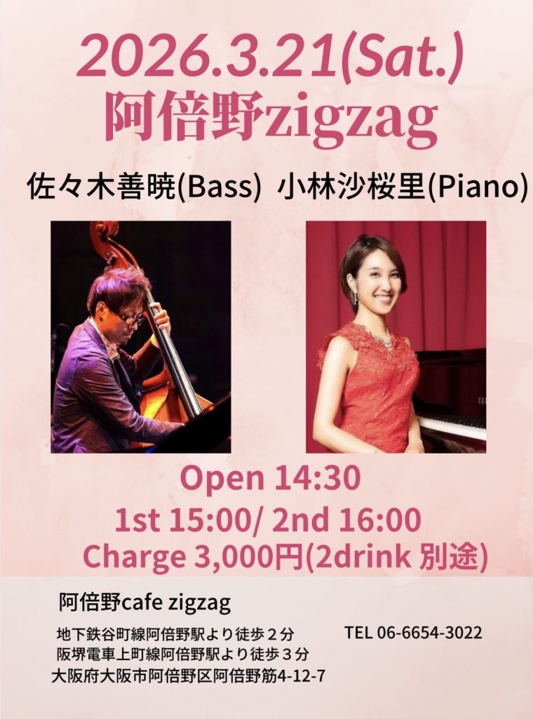 武井努 sax 小林沙桜里 piano 梅本慈丹 bass